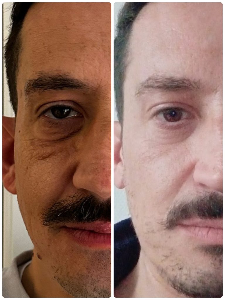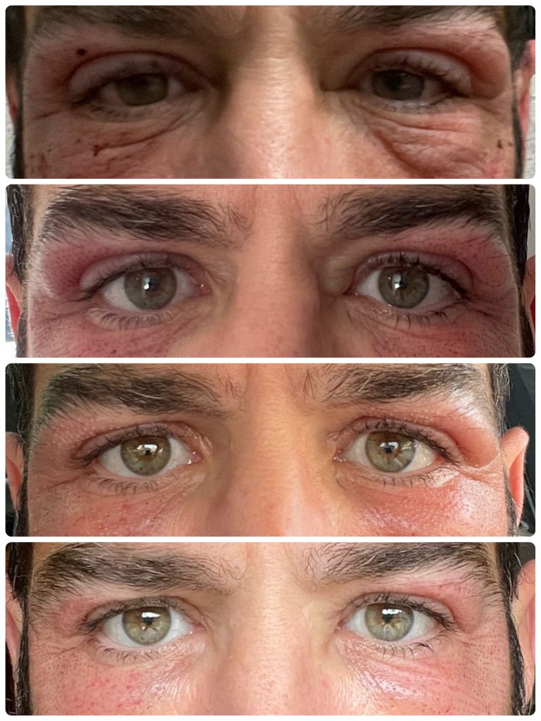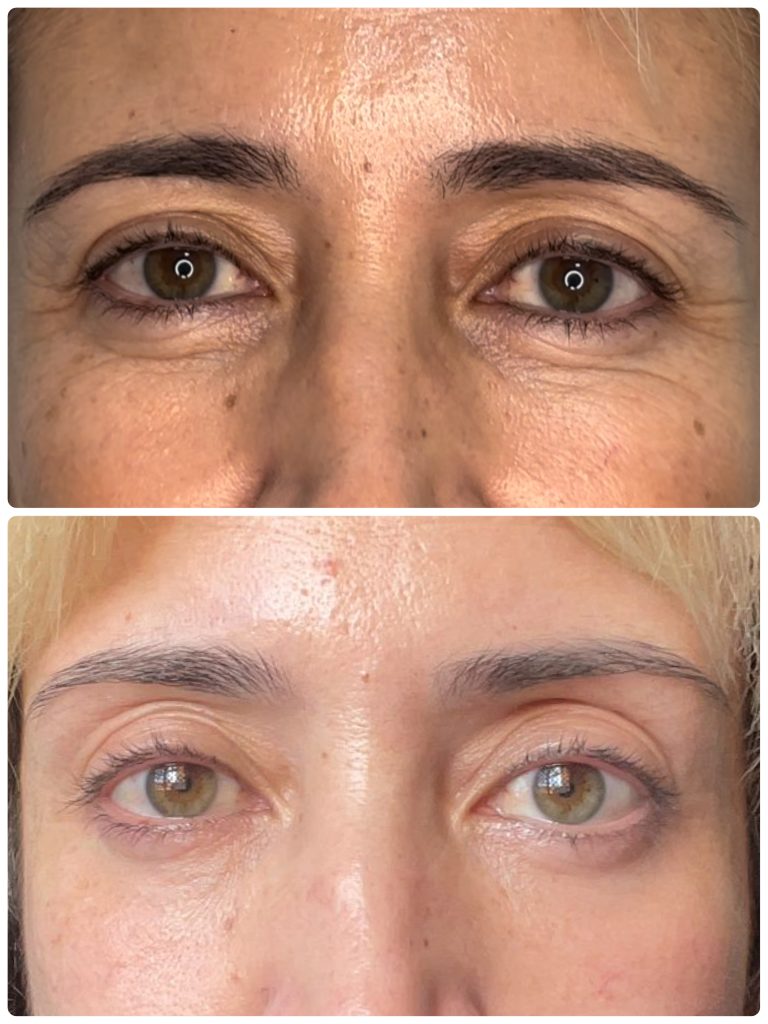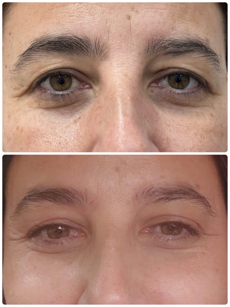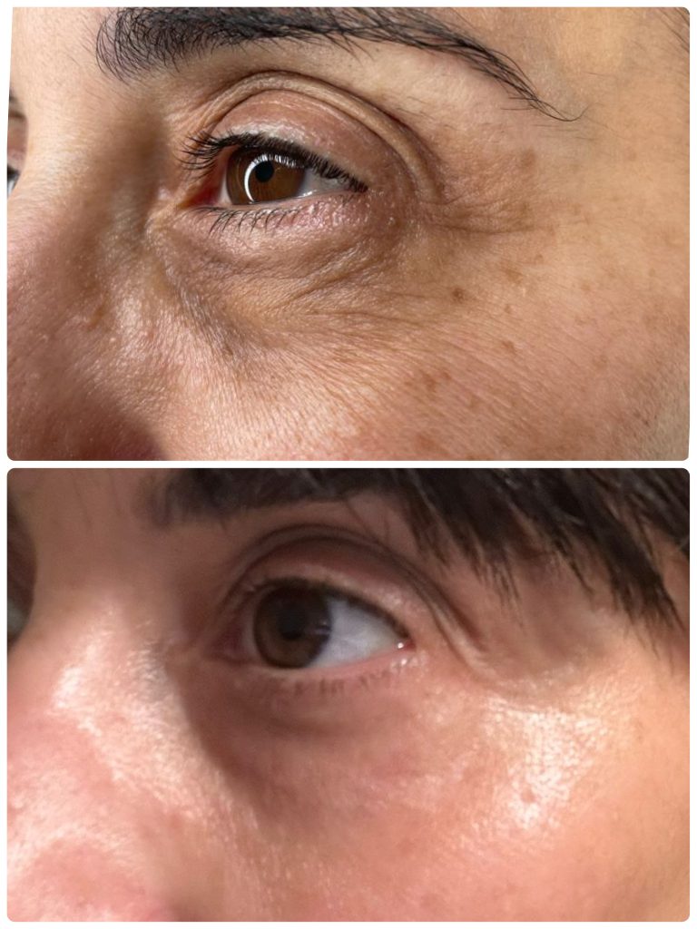 Resultados tras una sesión de Plasma Pen en zona periocular. Fotos enviadas por los pacientes tras mes y medio del tratamiento.