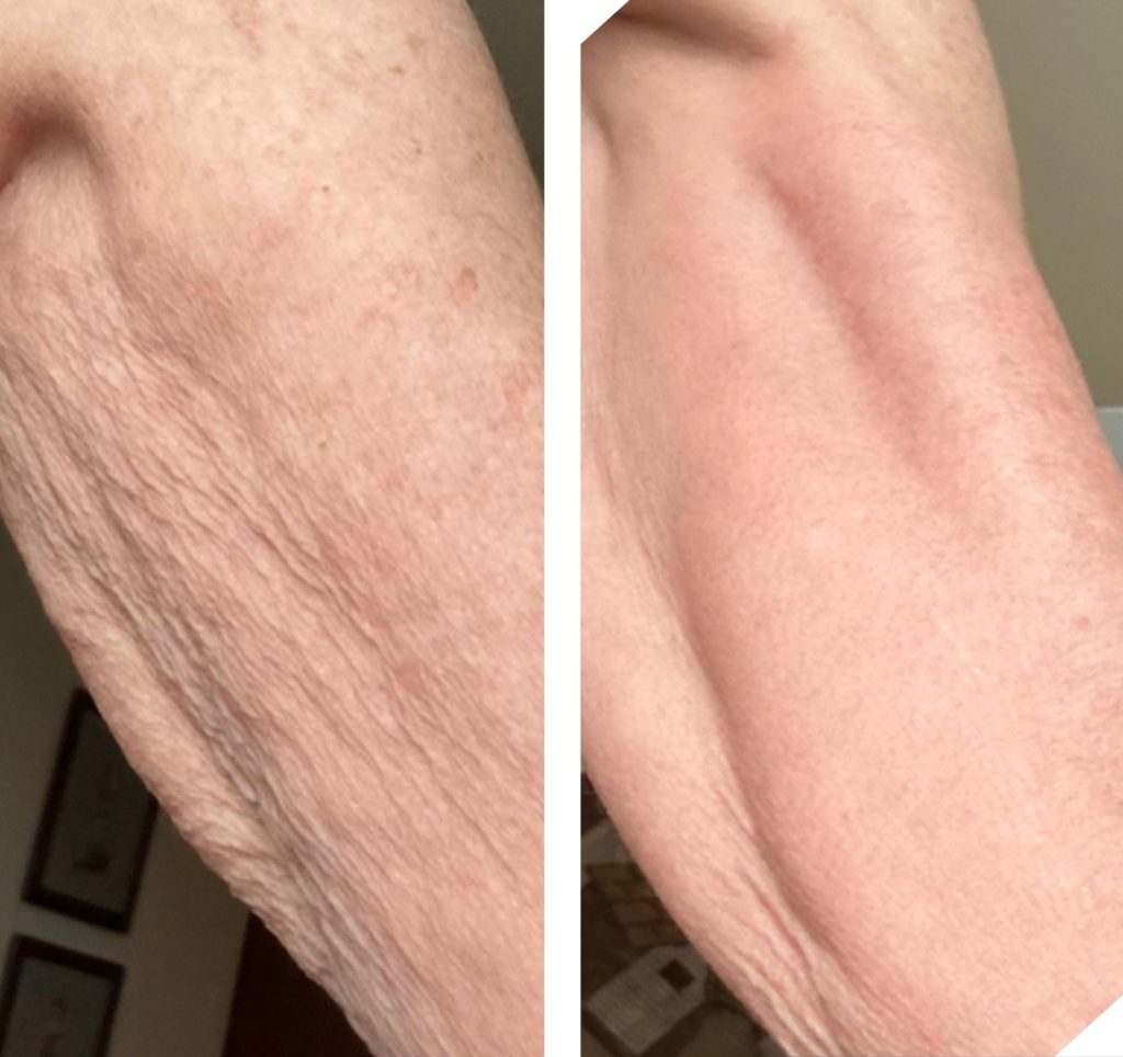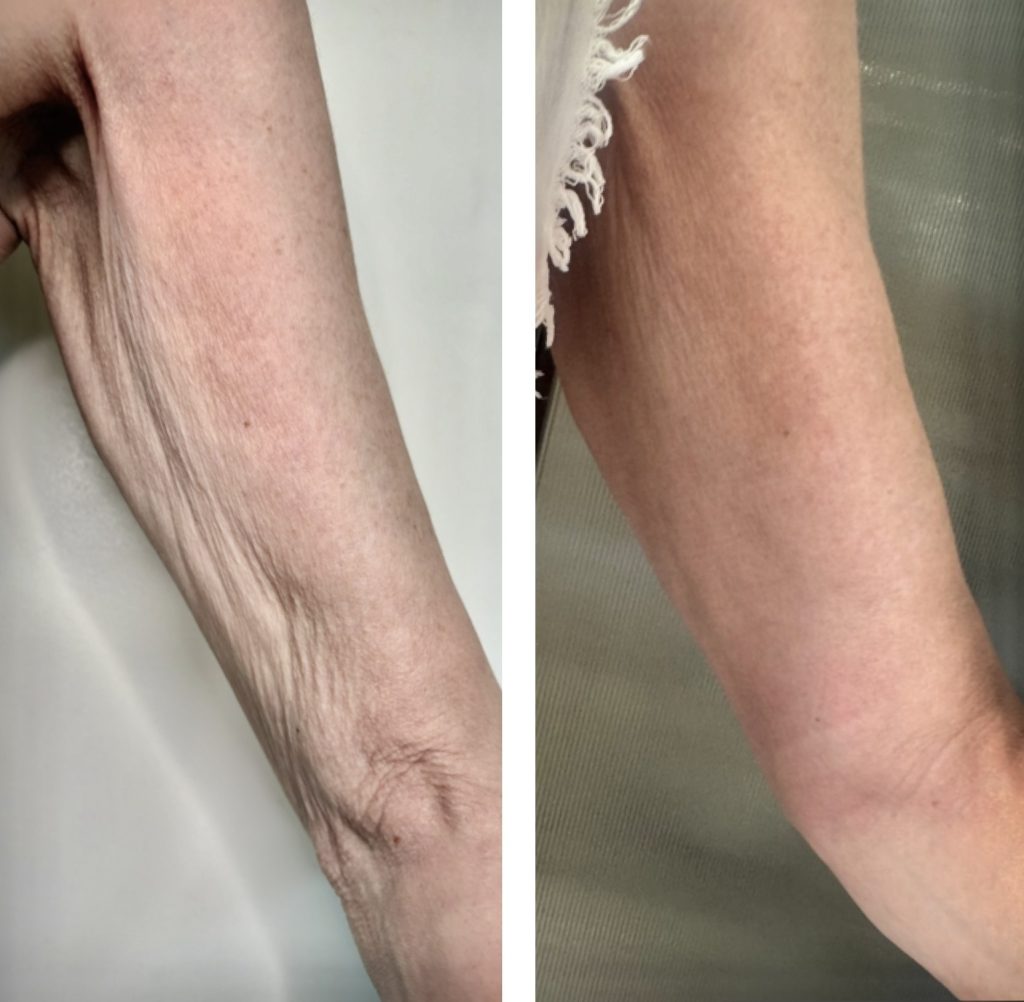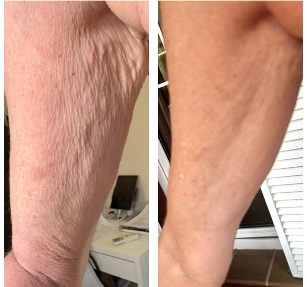 Resultados tras una sesión de Plasma Pen / FibroBlast en cara interna de brazos. Fotos enviadas por los pacientes tras mes y medio del tratamiento.